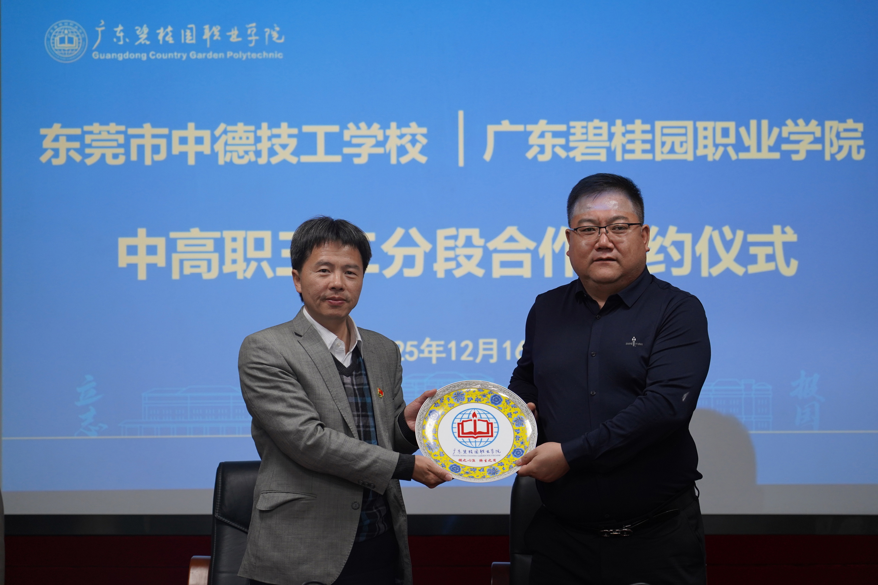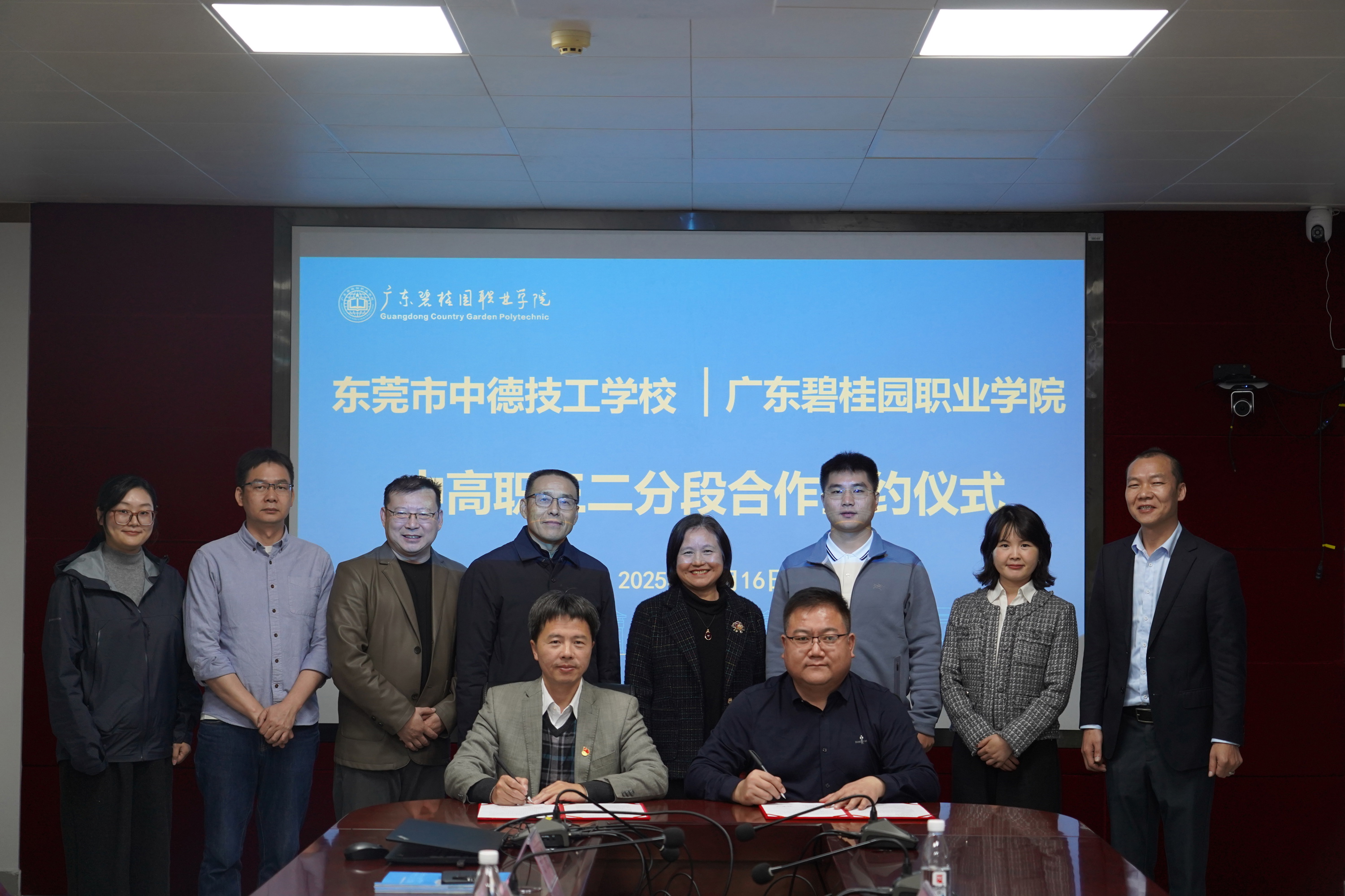 在交流环节,双方就专业设置、教学标准、转段考核等核心问题深入研讨,达成高度共识。随后,李颂国副校长与叶飞校长代表双方签订合作协议,标志着“中高职贯通培养三二分段”项目正式启动。根据协议,学生将在东莞市中德技工学校完成3年中职阶段学习,通过转段考核后进入广东碧桂园职业学院深造2年,毕业可获普通高职专科毕业证书,实现“技能+学历”双重提升。